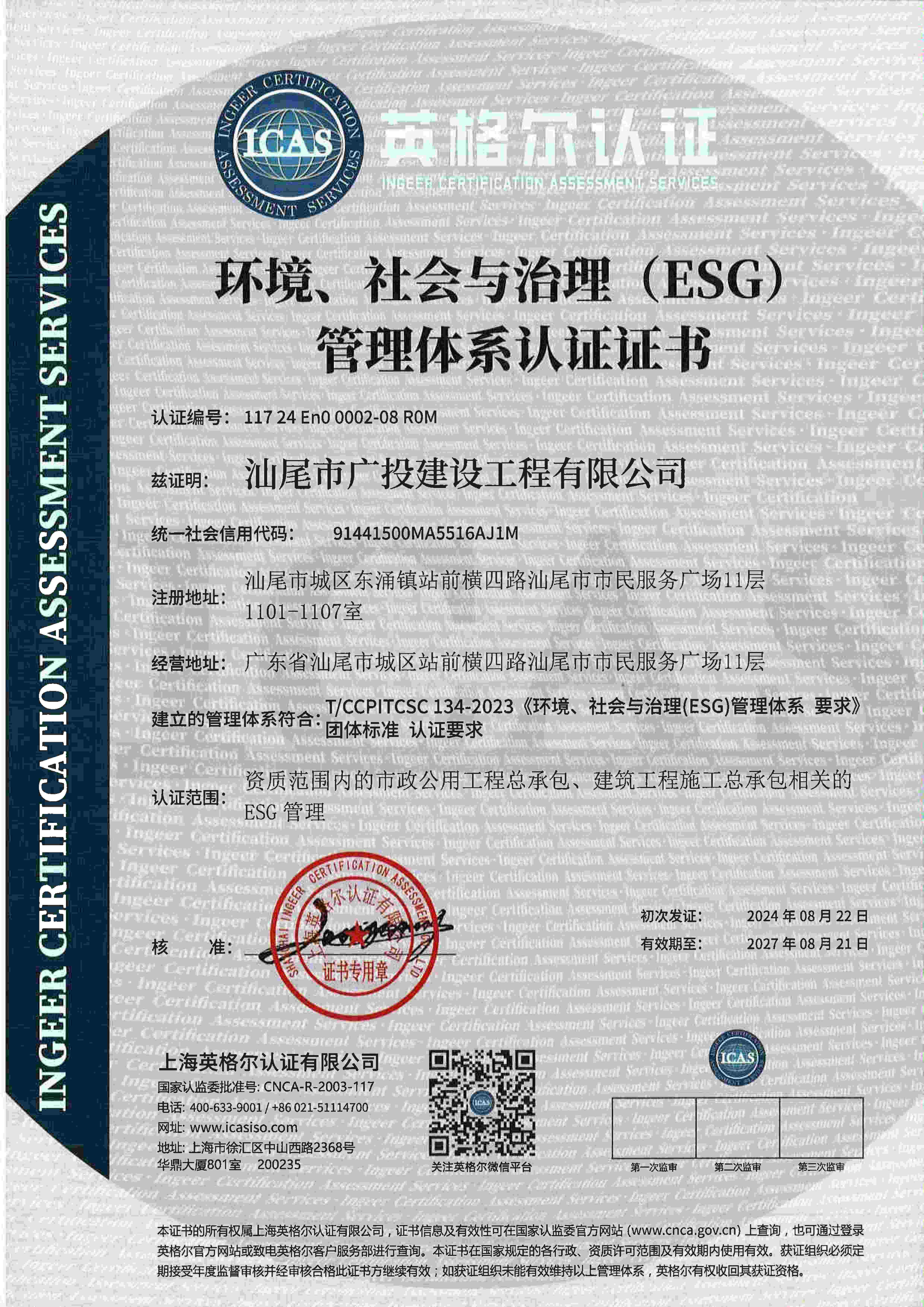 為推進(jìn)企業(yè)綠色發(fā)展,實(shí)現(xiàn)“雙碳”目標(biāo),汕尾市廣投建設(shè)工程有限公司(以下簡稱“汕尾廣投公司”)率先引入ESG管理體系,于近日榮獲中國基建行業(yè)首個ESG管理體系認(rèn)證。 ESG體系強(qiáng)調(diào)綠色低碳發(fā)展、社會責(zé)任、員工權(quán)益和公司治理等方面,引入該體系建設(shè)可從整體上持續(xù)優(yōu)化管理模式。通過全要素成體系推進(jìn),8月22日汕尾廣投公司榮獲由ICAS英格爾認(rèn)證頒發(fā)的中國基建行業(yè)首張ESG管理體系認(rèn)證證書,成為國內(nèi)基建領(lǐng)域推行ESG管理的先行者。同時,汕尾廣投公司榮獲ESG管理體系認(rèn)證是整個基建行業(yè)綠色轉(zhuǎn)型的一個重要里程碑,為推動行業(yè)向綠色低碳轉(zhuǎn)型提供了新樣本。 汕尾廣投公司成立以來,堅(jiān)持“創(chuàng)新、協(xié)調(diào)、綠色、開放、共享”的發(fā)展理念,承接了多個重點(diǎn)民生項(xiàng)目和應(yīng)急工程,已成長為區(qū)域基建領(lǐng)域的骨干力量。接下來,汕尾廣投公司將繼續(xù)發(fā)揮國企優(yōu)勢和擔(dān)當(dāng),利用高新技術(shù)企業(yè)成功創(chuàng)建優(yōu)勢,進(jìn)一步推進(jìn)綠色建筑和低碳技術(shù)的研發(fā)應(yīng)用,充分釋放ESG體系治理效能,為實(shí)現(xiàn)公司高質(zhì)量發(fā)展,落實(shí)省市《碳達(dá)峰實(shí)施方案》,助力區(qū)域基建行業(yè)綠色低碳轉(zhuǎn)型貢獻(xiàn)力量。